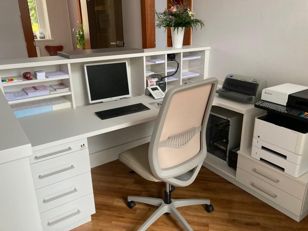 Fresh-up einer gynäkologischen Arztpraxis mit neuen Möbeln, Materialien und neuem Farbkonzept, passend zur CI