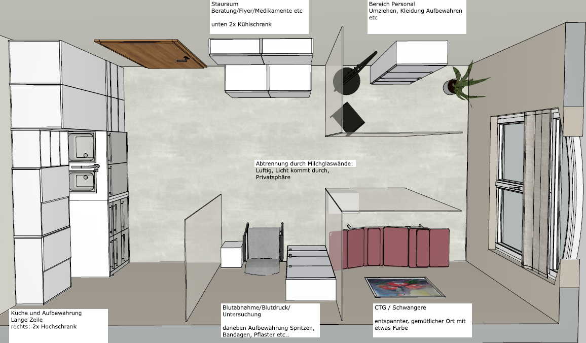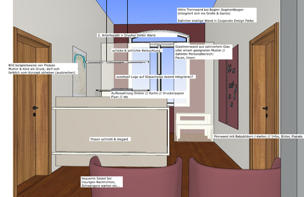 Durch die Erstellung eines neuen Konzeptes, mittels Collagen, 3D-Visualisierung und Grundrissplanung, konnte das neue Konzept sichtbar gemacht werden.